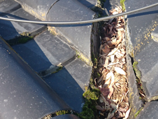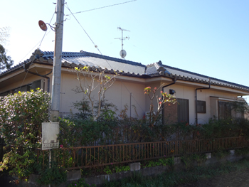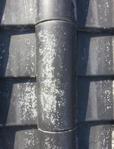 | 家の裏手側は特にコケの汚れが目立っていました。 | 屋根にもコケがびっしりとついていました。 | 瓦の隙間には落ち葉が詰まってしまっています。 |