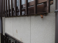 | 施工前の外観です。 | 壁にはシミなどの汚れが目立っています。 | 壁以外にも全体的に錆びや汚れが目立ちます。 |