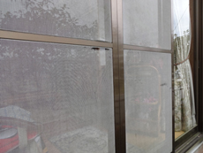 | 木部も傷みが目立ちます。 | 網戸には穴が空いてしまっています。 | 金具は錆びてしまっています。 |