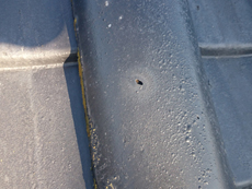 | 小さな傷なども見られました。 | 屋根全体に白い汚れがびっしりとついていて、見栄えがとても悪い状態でした。 |