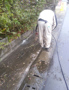 | 入口付近の汚れも落としていきます。 | 徹底的に汚れを落として綺麗にします。 | 養生をしていきます。隙間まで丁寧に養生します。 |
