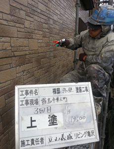 外壁の塗装が剥がれてしまったり、劣化が目立つので塗装を考えてました。 国分であった塗装セミナーで御社を知りました。丁寧に説明して頂いてありがとうございます。湧水町のどんな会社なのか不安でしたが、話を伺って信用できると思い、子供にも了承を得たので、塗装をお願います。(F様より) |
